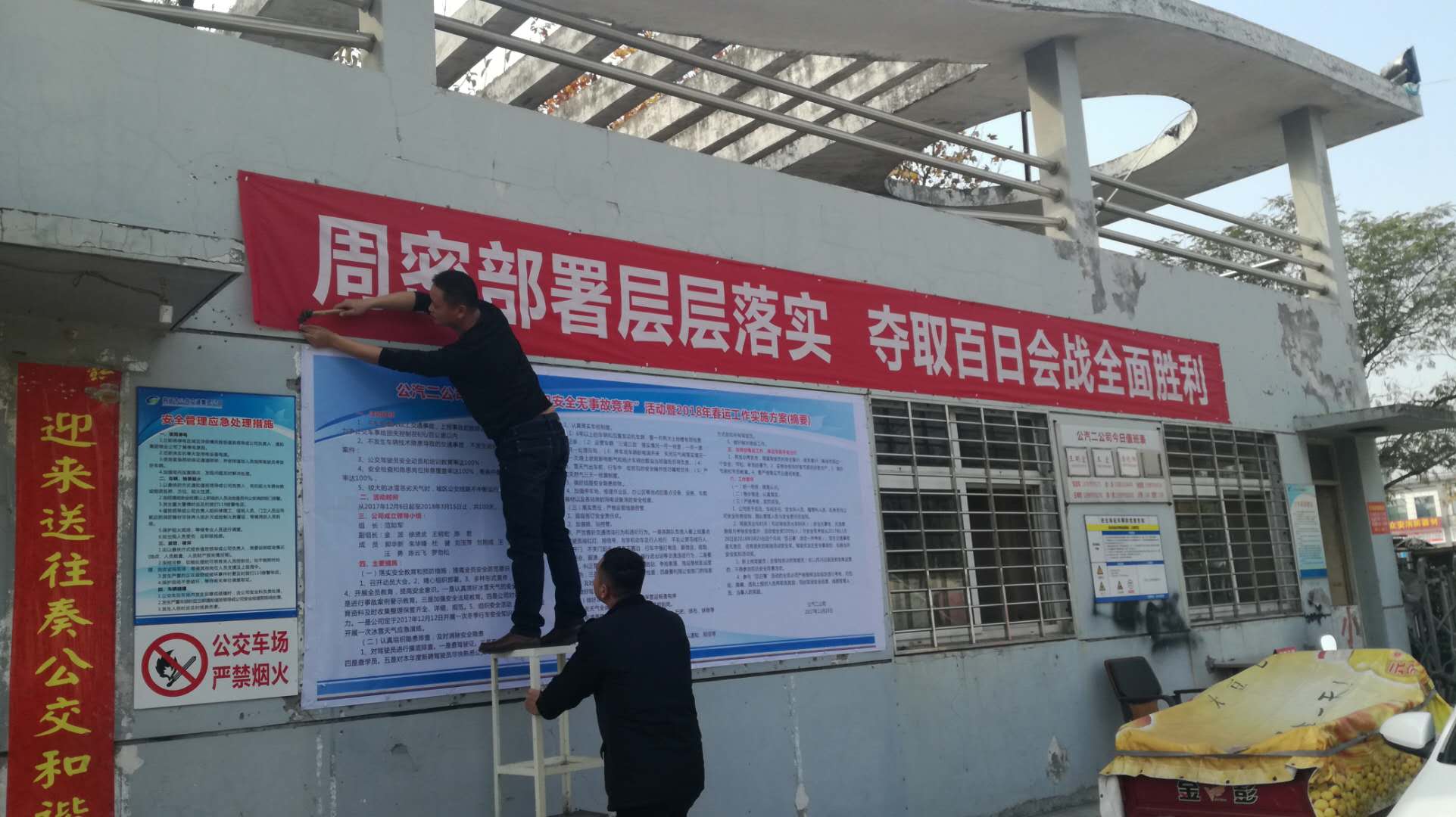 自11月26日“百日賽”活動啟動以來,二公司對照活動方案,穩(wěn)步推進各項安全管理工作,目前已完成對活動的宣傳,責任狀的簽訂,應急物資的準備工作,還利用各類會議、板報、短信微信、橫幅、車載車貼積極營造安全氛圍,提高一線人員的安全意識,掌握開展活動的重要性。